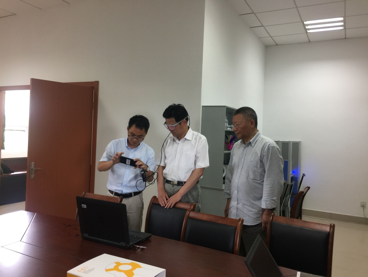 叶航教授向励如孟副校长详细介绍了研究团队近年来在经济学前沿研究领域----行为实验、神经实验与仿真实验方向的一系列研究成果。