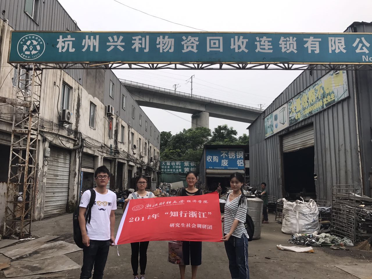 “知行浙江”调研团队在王岭老师的带领下,以“互联网+”背景下电子垃圾回收效率测算及社会参与意愿调查研究”为主题,在杭州市内展开为期五天的调研活动。