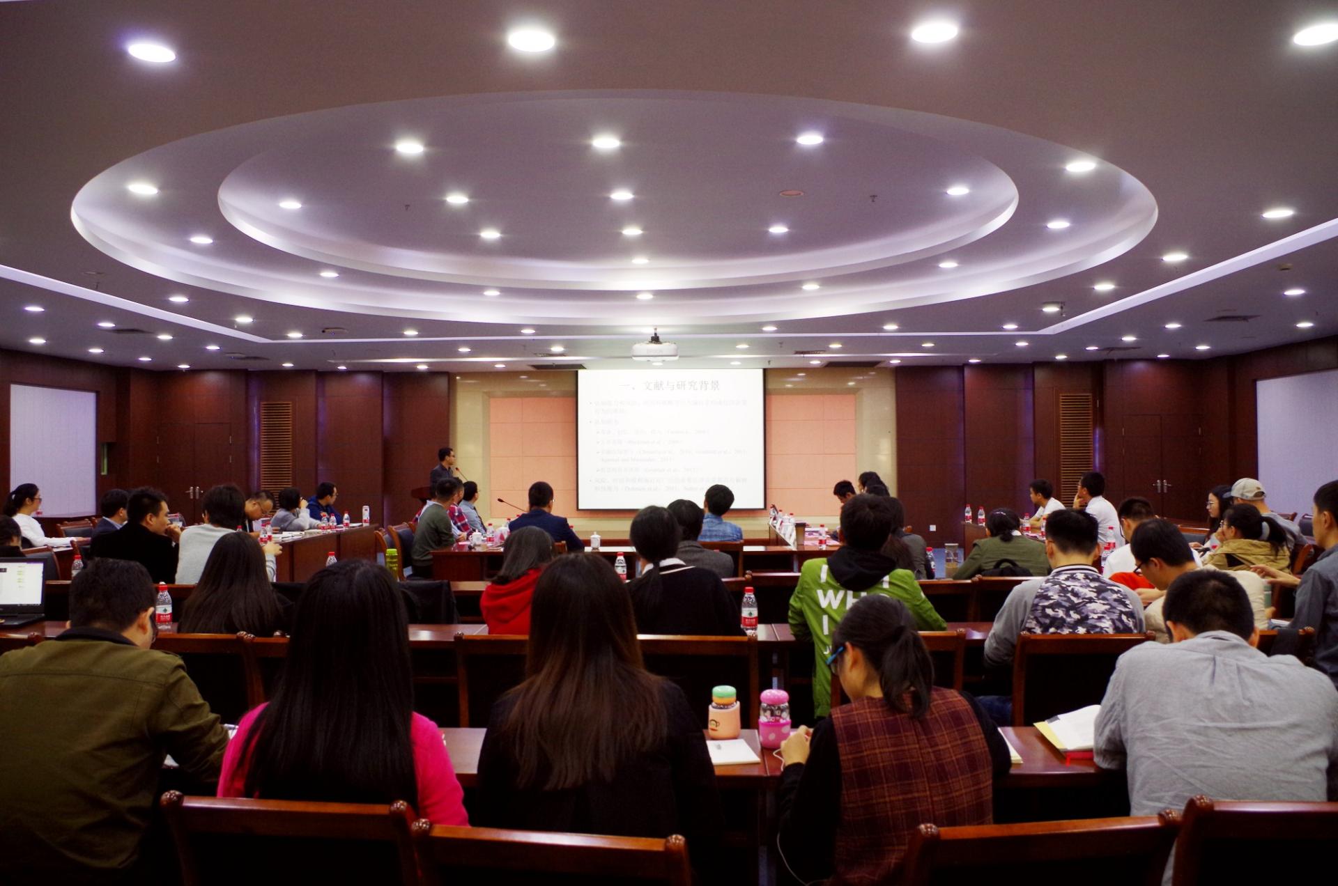 李文健博士生分别做了主题报告。本次研讨会共报告和交流了8篇工作论文,涉及金融发展与中国资本回报率、金融健康与企业国际化经营决策、认知能力与金融决策行为、进口中间品贸易自由化对劳动收入份额的影响、金融业开放与中国制造业竞争力提升、家庭出身与企业创精神的代际传承、中国城市土地出让与经济发展、城乡二元经济中的最优所得税与商品税等主题,与会人员进行了深入地交流。