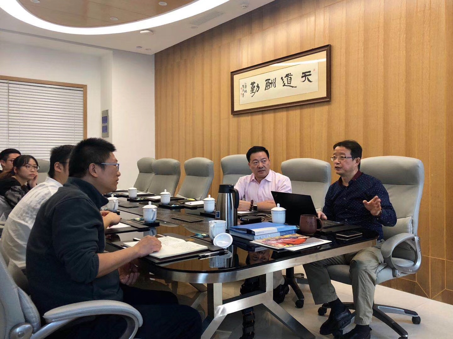 部分国际贸易及国际商务专业研究生前往汇孚集团有限公司(以下简称汇孚集团)进行调研。汇孚集团总经理邵龙河先生是我校国际商务硕士专业学位点的社会导师,此次调研活动系校内外双导师的一次协同教学合作。陪同调研的还有另一位社会导师——杭州浙港制衣有限公司董事长陈亮先生。