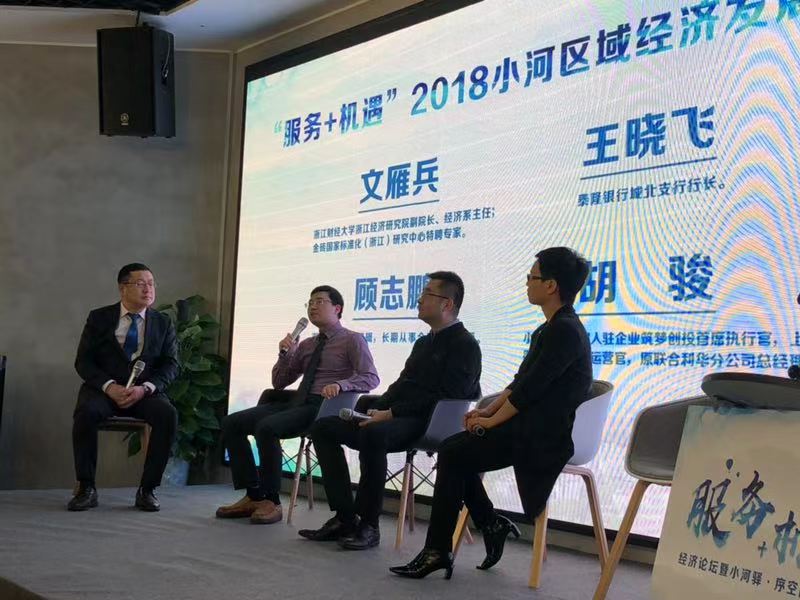 11月1日,浙江经济研究院文雁兵副院长、研究院秘书周玮受邀参加杭州市拱墅区小河街道举办的 “服务+机遇”2018小河区域经济发展论坛。