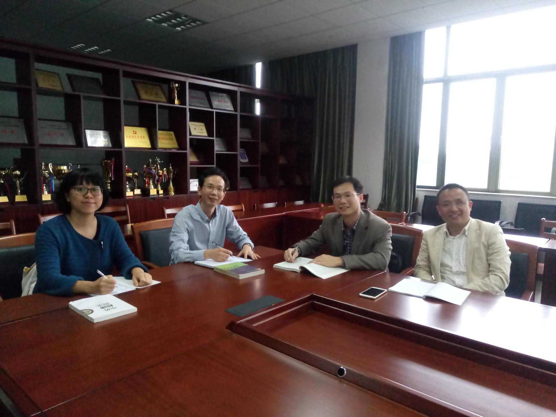 楼313会议室举办教研活动,活动由教研室主任王力教授主持,张湖东、麦正锋、黄禾雨等老师参加了讨论。