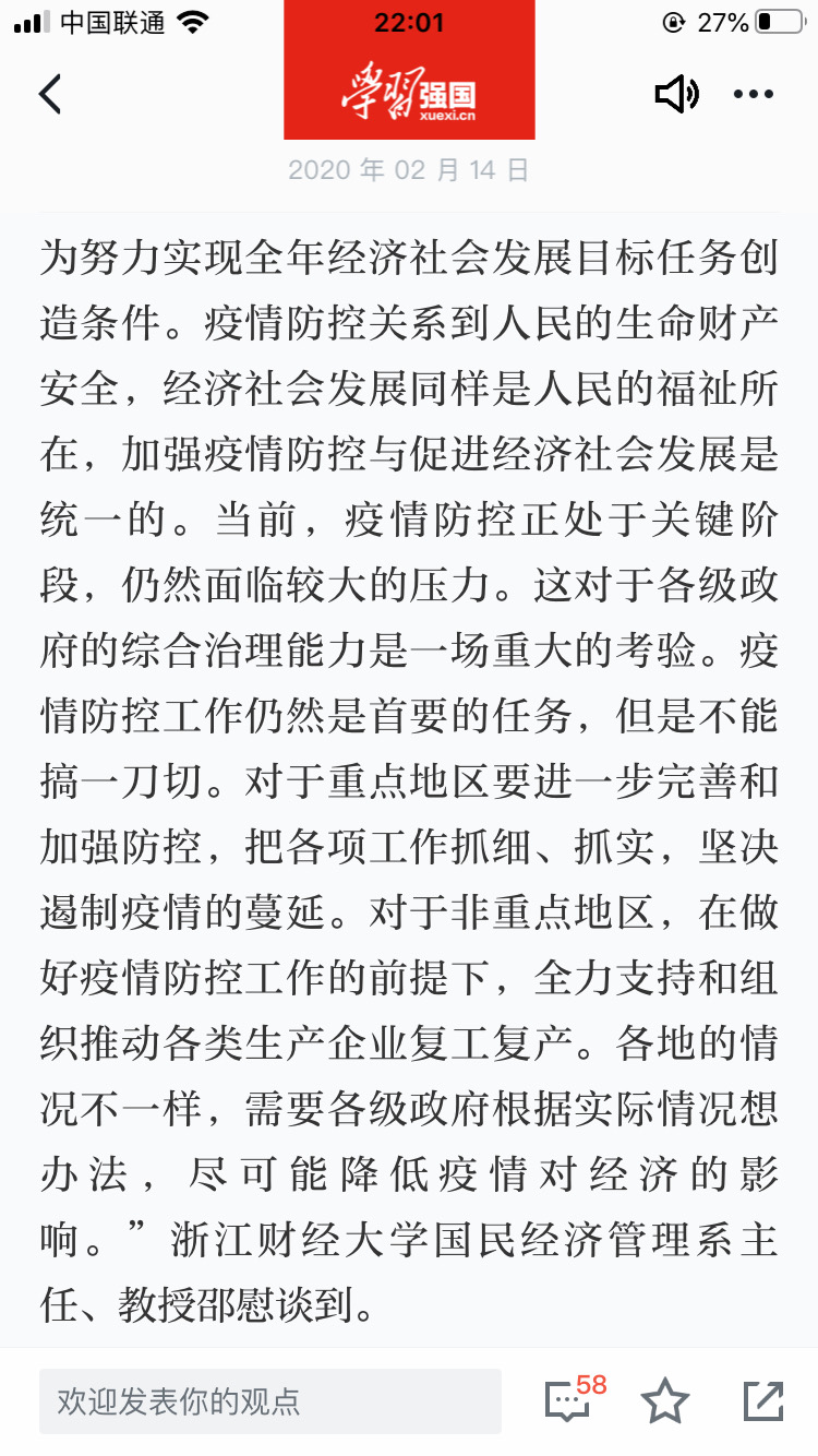 在疫情当下,教工第一支部党员邵慰教授充分发挥学科优势,积极建言献策,在人民网文章《工作越吃劲越要毫不放松 习近平强调抓实抓细抓落地》中指出“加强疫情防控与促进经济社会发展是统一的”,为社会各界疫情防控及完善相关政策提供参考。随着学校正式线上开课,雷速体育投注