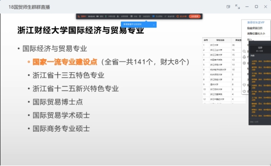 通过线上直播召开了2018级国际经济与贸易专业年级大会。本次活动由国际与贸易专业主任吴宏老师主持,并特别邀请陈佳瑜学姐与王子晨学长分别从考研和就业两个方面给同学们分享经验。