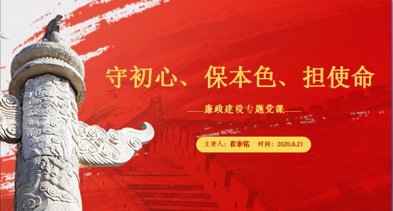工作实际,纪委书记崔泰铭给大家讲授了“守初心、保本色、担使命”廉政建设专题党课,要求全体纪委成员一是守初心,守住胸怀忠诚的赤子之心;二是保本色,牢记干净的底线要求;三是担使命,保持担当的奋斗姿态。