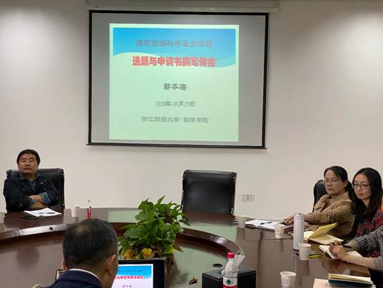 近日,雷速体育投注 召开国家级课题申报辅导会,邀请中国计量大学经济与管理雷速体育app 博士生导师郭本海教授做了题为:“国家自然科学基金项目选题与申请书撰写体会”的讲座。院长助理邓晓军等多位老师,参加了本次会议。