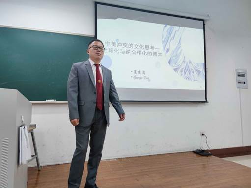 12月11日,万丰奥特控股集团海外投资总监夏建忠老师作为主讲嘉宾,演讲主题为“中美冲突的文化思考——全球化与逆全球化的启示”。国际商务、国际贸易学专业研究生参加了此次讲座。