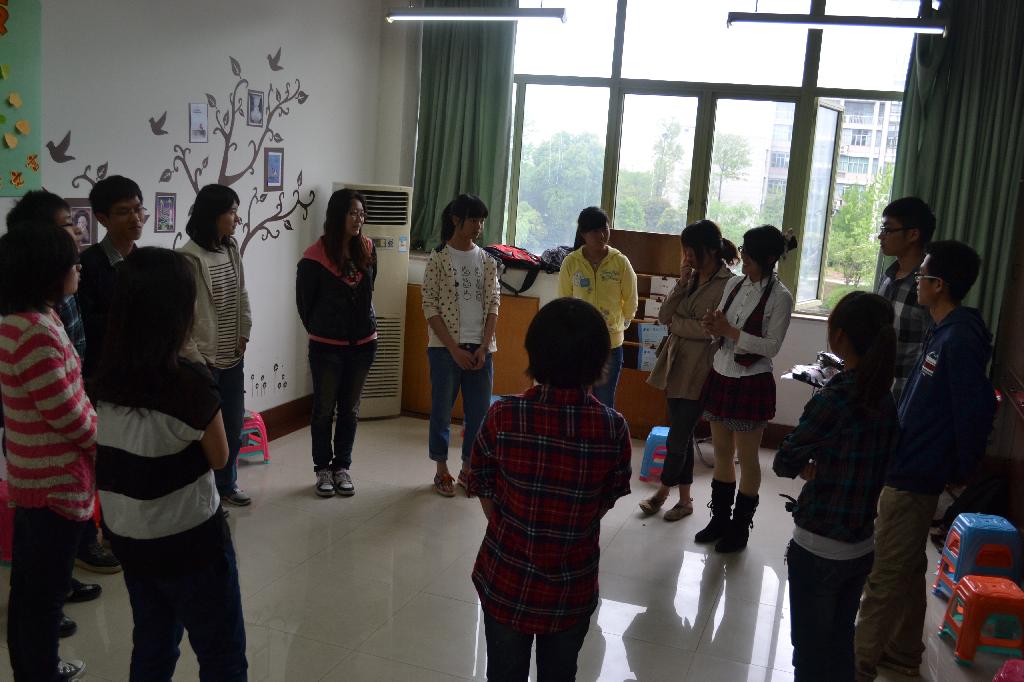 心理工作站成员开展了心理健康团体辅导,通过“大风吹”、“滚雪球”、“一元五毛”、“情系千千结”四项活动让同学们充分体会和分享游戏带来的感受。