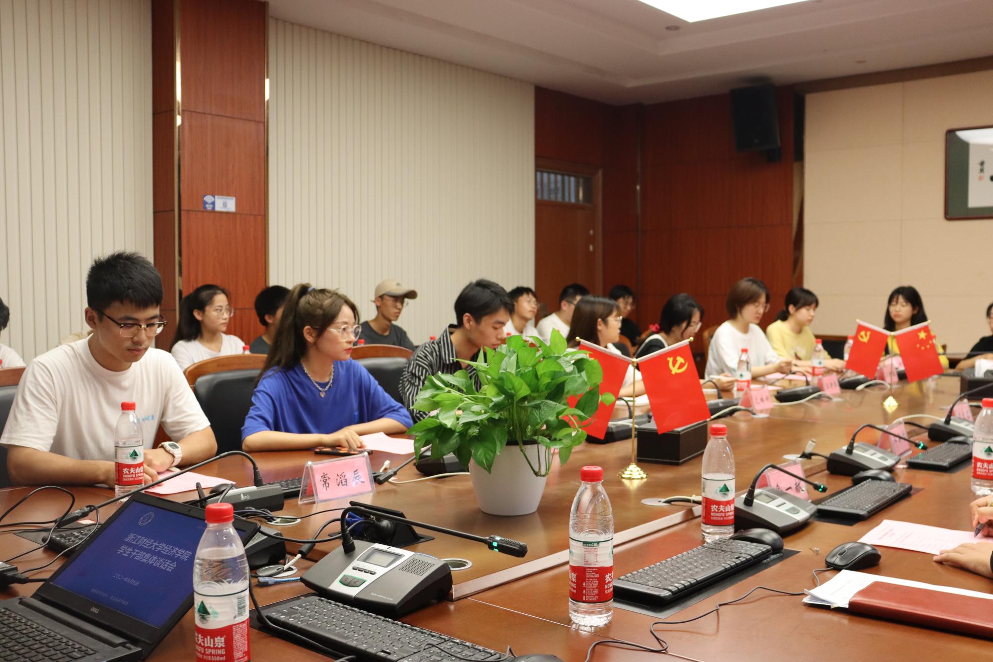 楼210会议室召开2021-2022学年学生干部集体学习谈话会。党委副书记崔泰铭,团委书记曹仲晔,辅导员邓斯怡、韦罗成、陈秋涵、俞一献,团委兼职副书记、学生会主席团、各学生工作站负责人以及各社团负责人出席了本次会议。