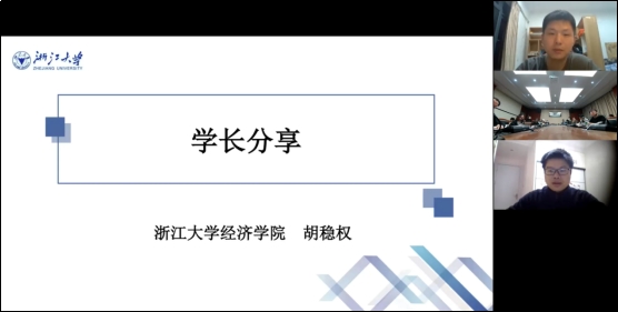 本次分享会,胡稳权学长结合自己的亲身经历给2021级经济学拔尖人才创新班带来了一场干货满满的线上分享,解答了同学们生活与学习中的困惑,让同学们有了更加明确、清晰的未来规划。