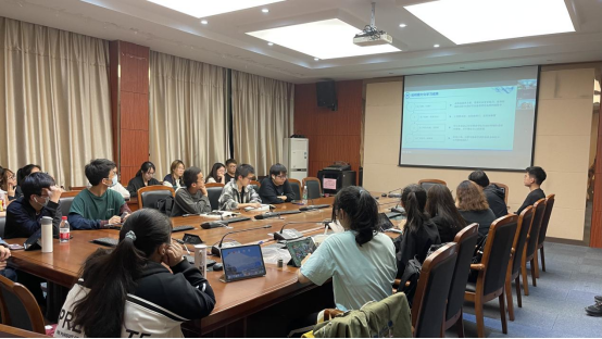 接下来,胡稳权博士进行了两个部分的发言分享:首先,他从“学业”与“娱乐”的关系入手,以自己的学习安排表为例,分析了大一的同学该如何正确对待学习与娱乐。紧接着,他将未来分为“深造”与“就业”两个部分,分别从春秋招、公务员、考研与出国四条路径分析了各个选择需要什么独特的个人能力,以及为了达成该能力应如何努力;其次,他以“找树枝”这一生动的比喻引入,为同学们阐述了本科生与研究生研究方向、研究内容的区别,并在生活与学业方面给出了六点实用的建议。同时他希望创新班的同学们能够在大学尽早做好学业与人生规划、利用好身边资源,体验一段充实丰富的大学生活。