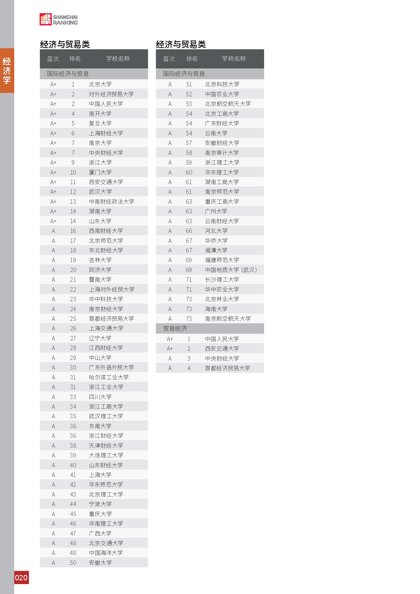 的经济学专业和国际经济与贸易专业均被评为“A”,其中经济学专业在全国402个专业点中排名第33位,国际经济与贸易专业在全国756个专业点中排名第36位。