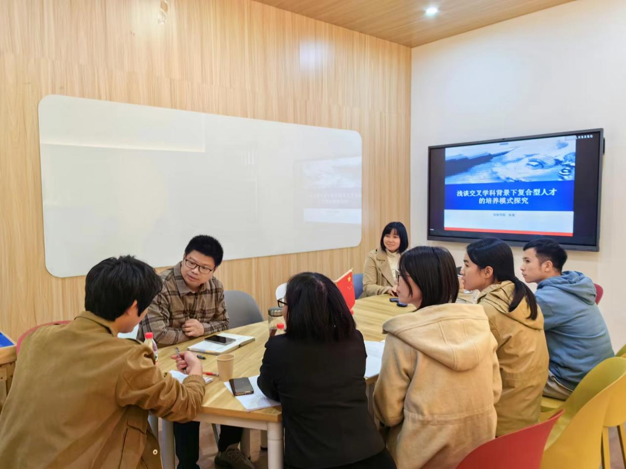 朱凌副教授举办了题为“浅谈交叉学科背景下复合型人才的培养模式探究”的教学双周论坛。本次论坛由副院长邓晓军教授主持,方杰炜、孙琴、林晏清、潘登、许一帆等青年教师参加了会议。