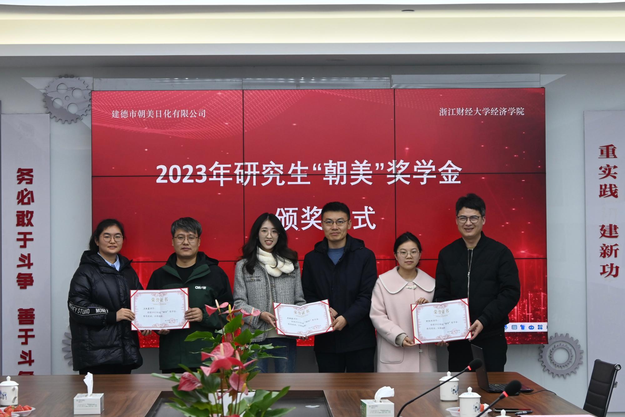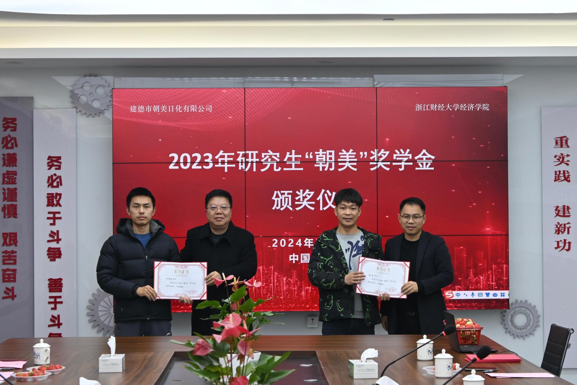 1月13日下午,第二届研究生“朝美”奖学金颁奖仪式在建德市朝美日化有限公司举行。建德市校友会秘书长胡志平,公司副总经理、雷速体育app