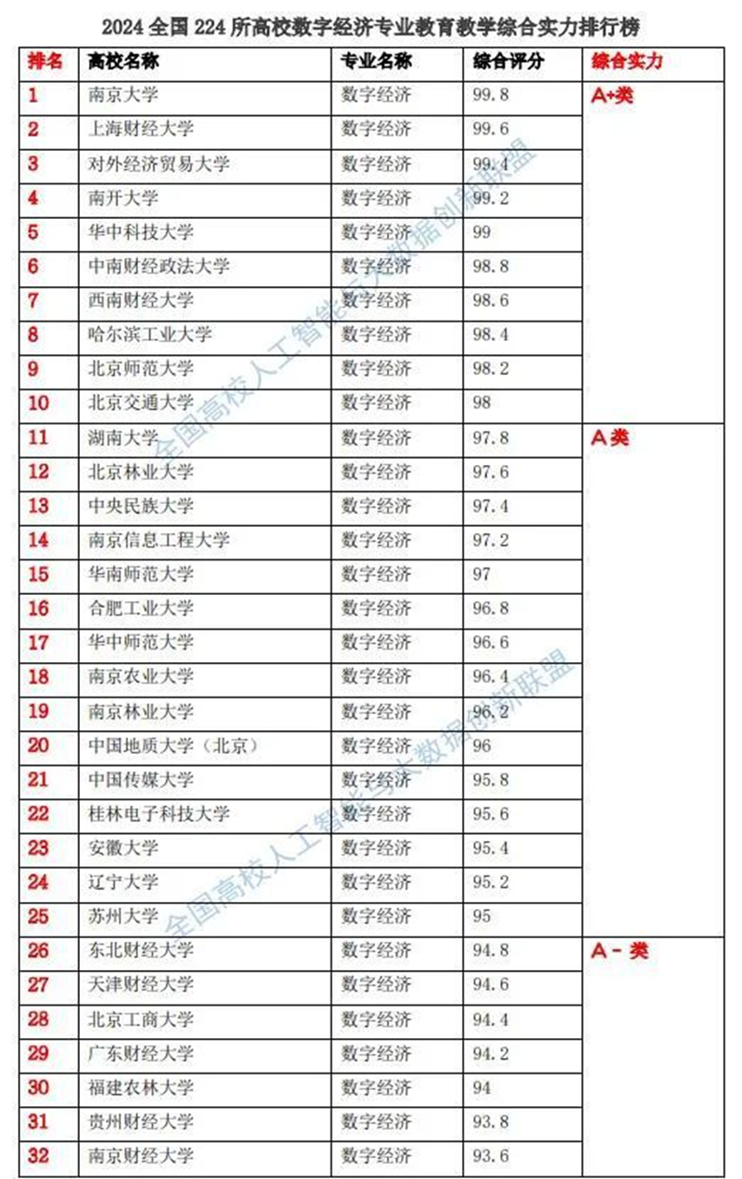 根据《2024全国224所高校数字经济专业教育教学综合实力排行榜》最新数据,我校数字经济专业教育教学综合实力总体水平位居全国高校之首“A类”,具体排名为“A-”类第37名,同时位列浙江省高校第一,此榜单表明我校数字经济专业综合水平稳步提升,并获普遍好评。