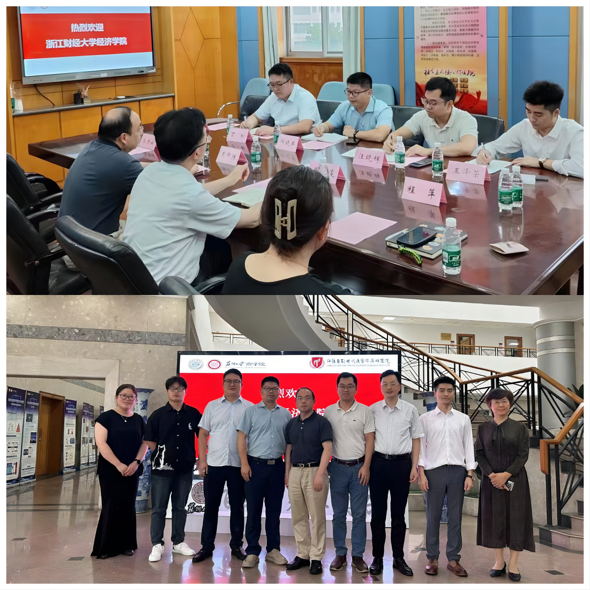 副院长周中胜,数字经济与贸易系主任周俊、党支部书记张腊娥、教学办公室主任程萍的热情接待。在围绕数字经济专业建设、课程建设与教材建设等方面开展深入交流基础上,双方均表示将进一步加强院际间的学术合作和教学交流,共谋数字经济专业更高质量更高水平发展。