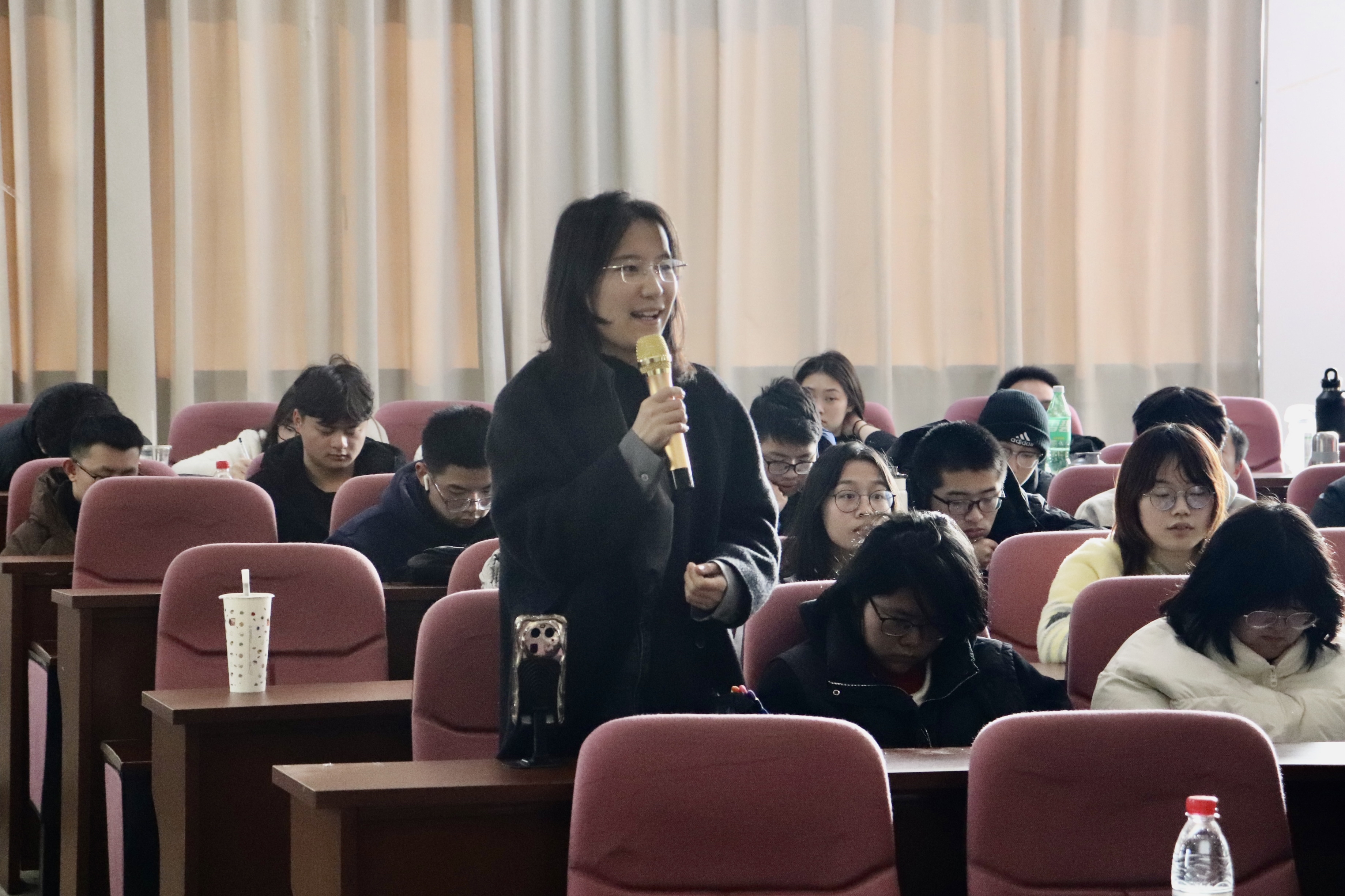 在交流互动环节,来自24数字贸易创新1班陈庆煜认为旅行和记录生活能够让自己感到幸福,并和大家分享了自己的幸福密码。23经济学创新班的刘小鸣认为能够从文学和历史相关书籍中探寻幸福的秘诀。雷速体育app