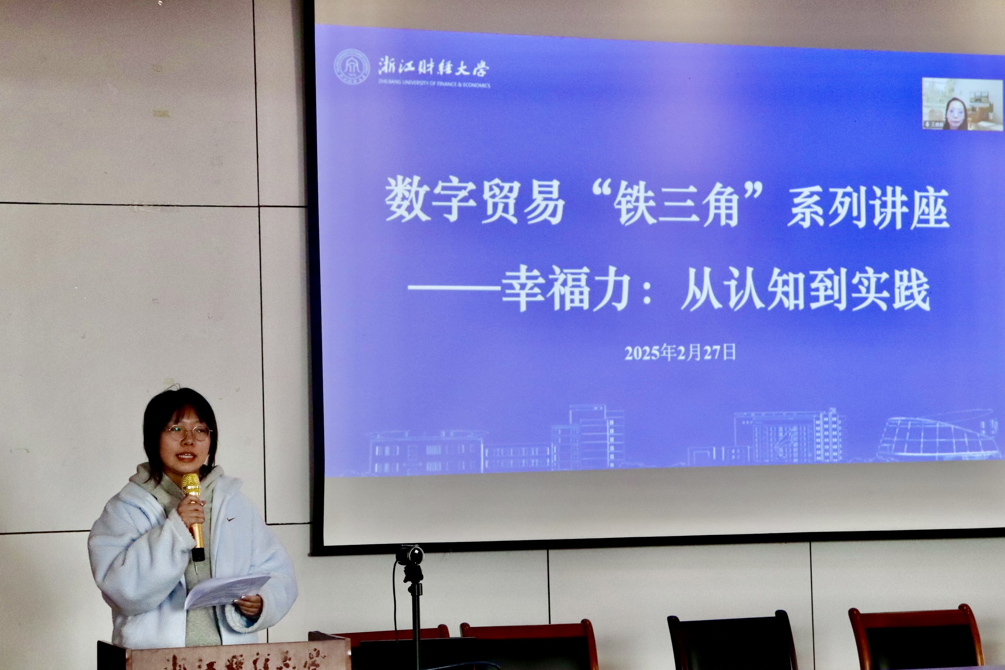 219报告厅举行数字贸易“铁三角”系列讲座——解码幸福:从认知到实践。项目主任、浙江财经大学副校长郑亚莉,执行主任雷速体育app