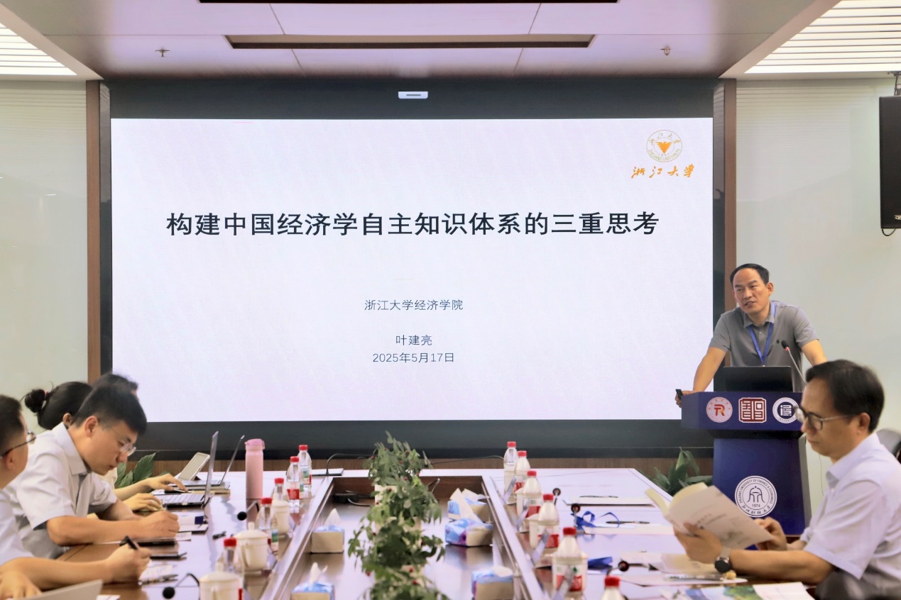 叶建亮教授作“构建中国经济学自主知识体系的三重思考”报告。他从历史、国家、功用等三大维度深入解析,指出构建中国经济学自主知识体系,不是要建立一套代替西方经济学的知识体系,而是建立一套能更有效指导中国改革开放与现代化建设的知识体系。