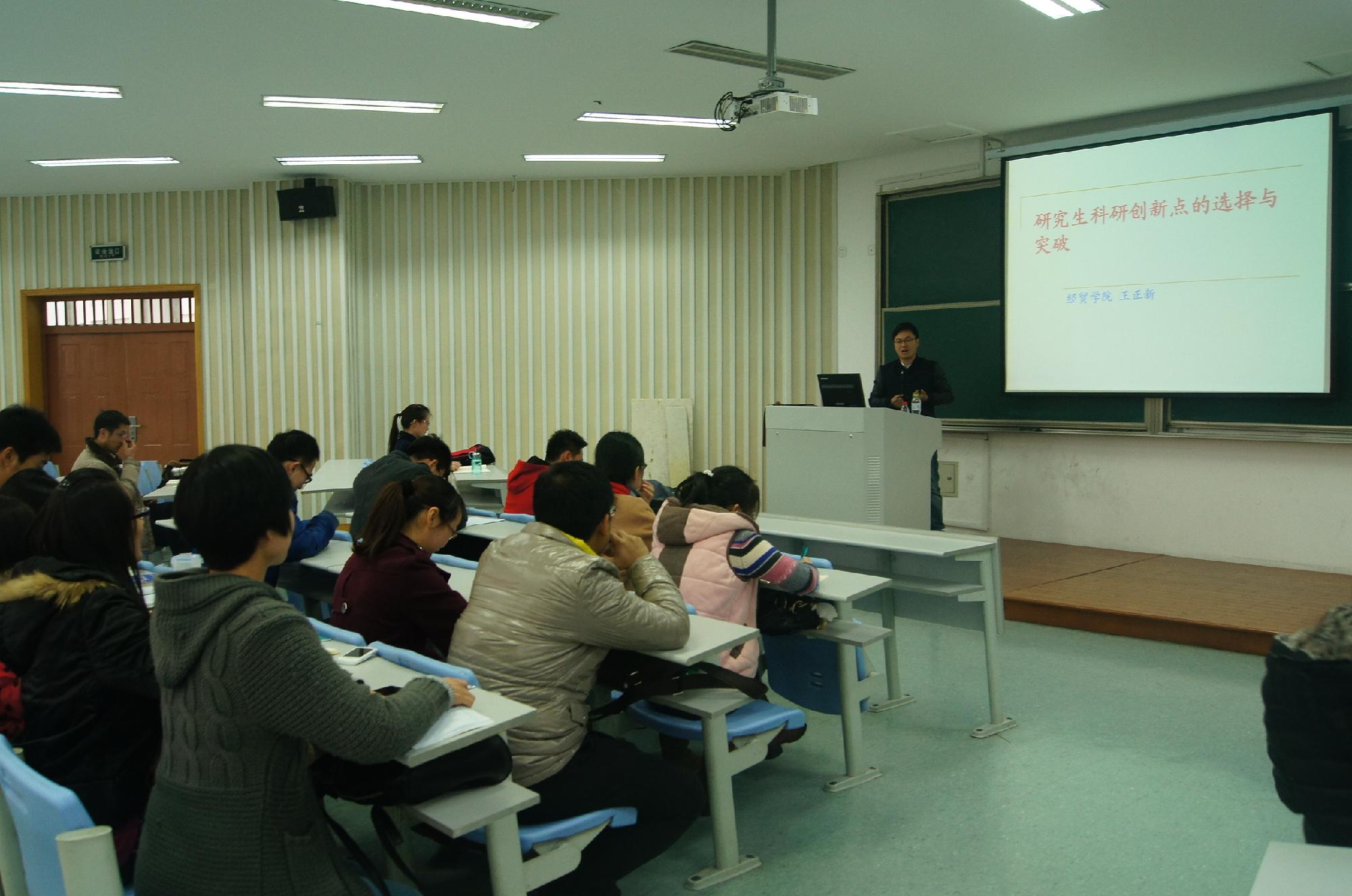 楼)111教室举行。王正新博士受邀就“如何利用计量经济学开展学术研究”为全院同学做了一场精彩而详尽的讲解。