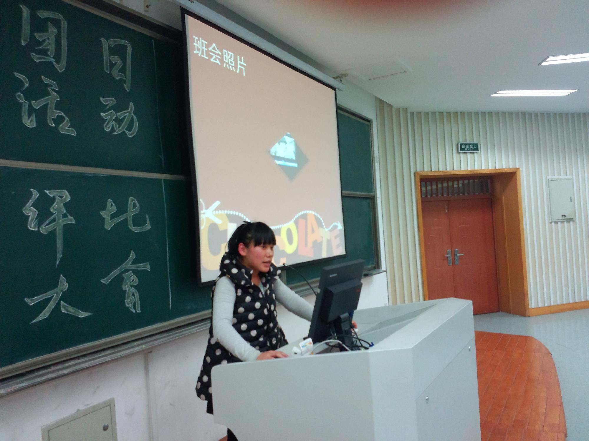 11、12、13级各班团支部代表分别上台展示了近1个月来各支部开展的此次团日活动成果。各班围绕“有我在 奋斗在”、“爱就说出来”和“一元钱工程”等主题开展形式多样的团日活动,在以“有我在 奋斗在”的班级讨论会上,同学们踊跃发言,不仅表达了自己对奋斗以及中国梦的见解,更是推出了自己身边的奋斗榜样,并发起了向身边的奋斗榜样学习的号召。同时,为了进一步激发同学们对梦想的追求,许多班级的同学还一起观看了视频《做一个梦想实现家》。而依托微博平台,结合感恩理念的主题微点名活动——“爱就说出来”,深深的促动了同学们心底的感恩、感激、感谢之情,许多同学都在微博上表达了自己对父母、对朋友、对室友心底的真挚情感。围绕“一元钱工程”,同学们不仅纷纷建言献策,更是身体力行,为需要帮助的人们献出自己的一份力量。而接下来对文明寝室话题板、废旧物品DIY活动的展示无疑让在场同学眼前一亮,各种生活中常见的废弃物在心灵手巧的同学们手中摇身一变,成为了让人爱不释手的小玩意和实用的生活用品,令人惊叹不已。