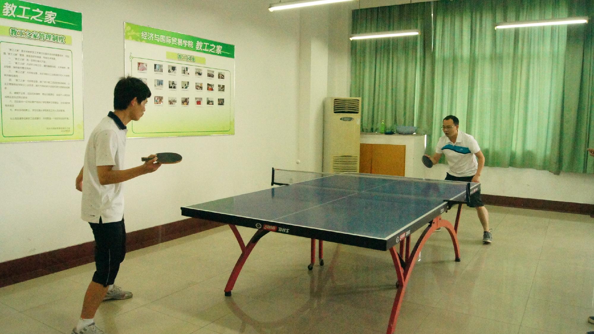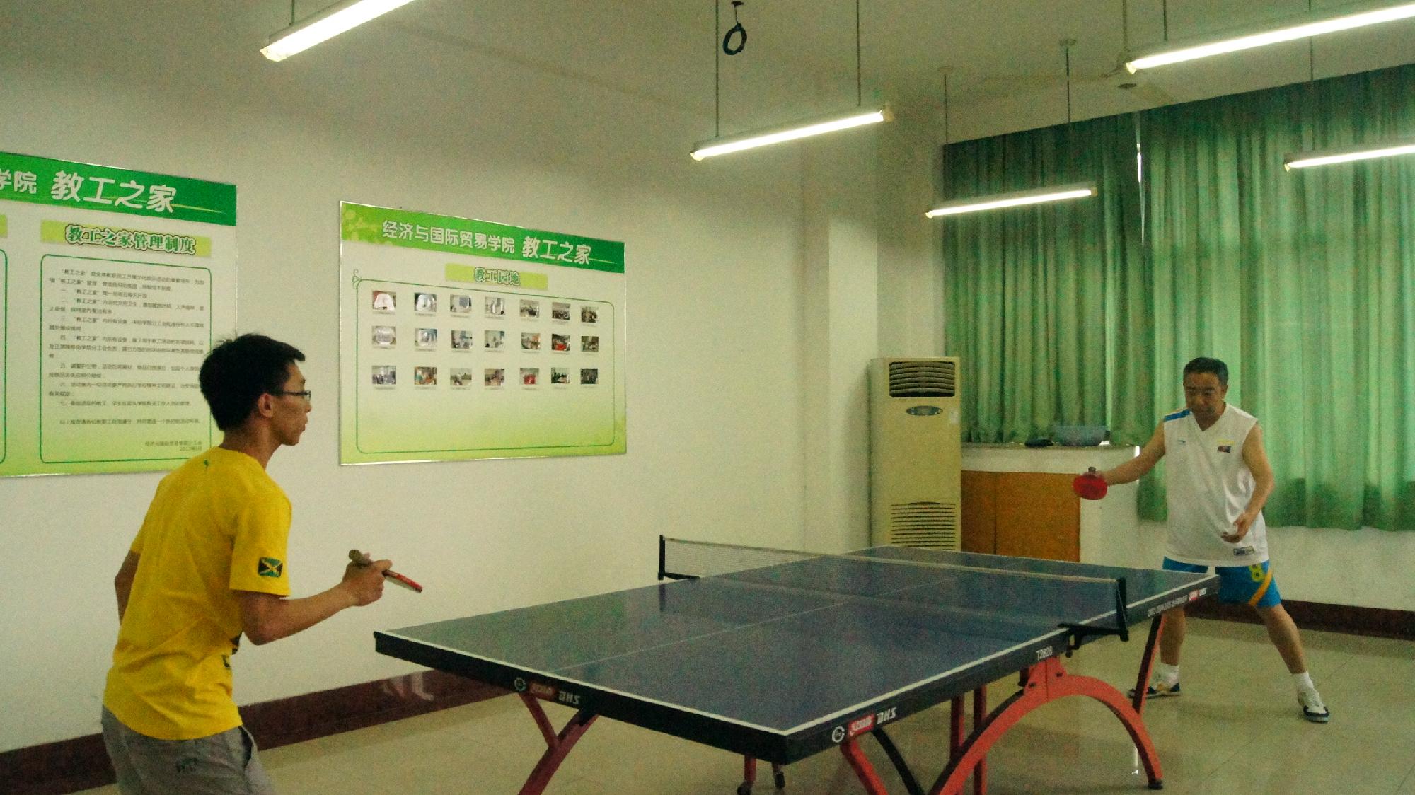 楼311教室举行,柴志贤老师和崔大树老师整装待发,一改平日课堂上严谨的形象,纷纷使出自己的看家本领。尽管只是切磋球技的友谊赛,但是谁也不放松,比赛一度进入白热化阶段。师生默契组合的混双比赛最终成为此次比赛的压轴大戏。