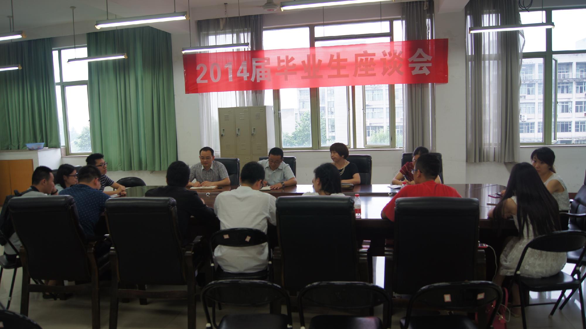 2014届毕业生座谈会在313会议室举行,院长胡亦琴,党总支书记范建锋,副院长柴志贤,党总支副书记叶秀和学生辅导员与雷速体育投注