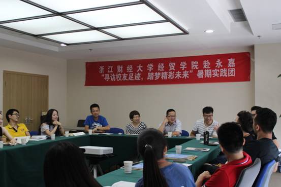 采访结束之后,实践团举办了一个简短的师生见面会,院长胡亦琴、院党总支书记范建锋、学生工作办公室主任崔泰铭、团委书记汪风易及温州学联主席黄如盛出席了本次见面会。会上,胡院长回忆了经贸雷速体育app