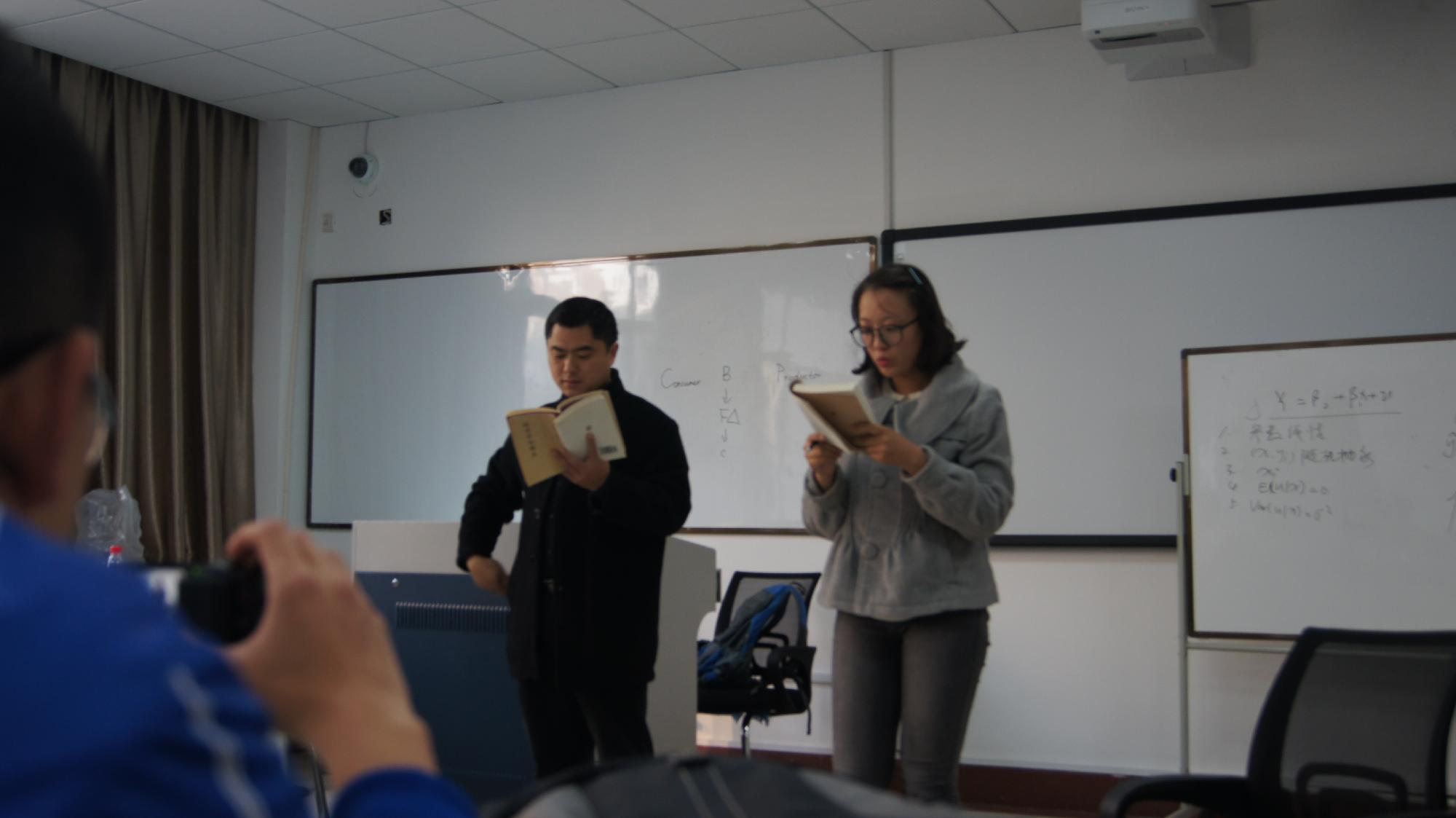 楼上,一派安详。同学们依次走上讲台,轻吟缓诵,品味经典。若有所思,这是每个同学走回座位时的共同神情,而在吟诵结束后,李老师都会对每一段内容进行解释和延伸,大家或抬头聆听或低头摘记,不觉间,大学章句已渐渐完结于声声诵读中。