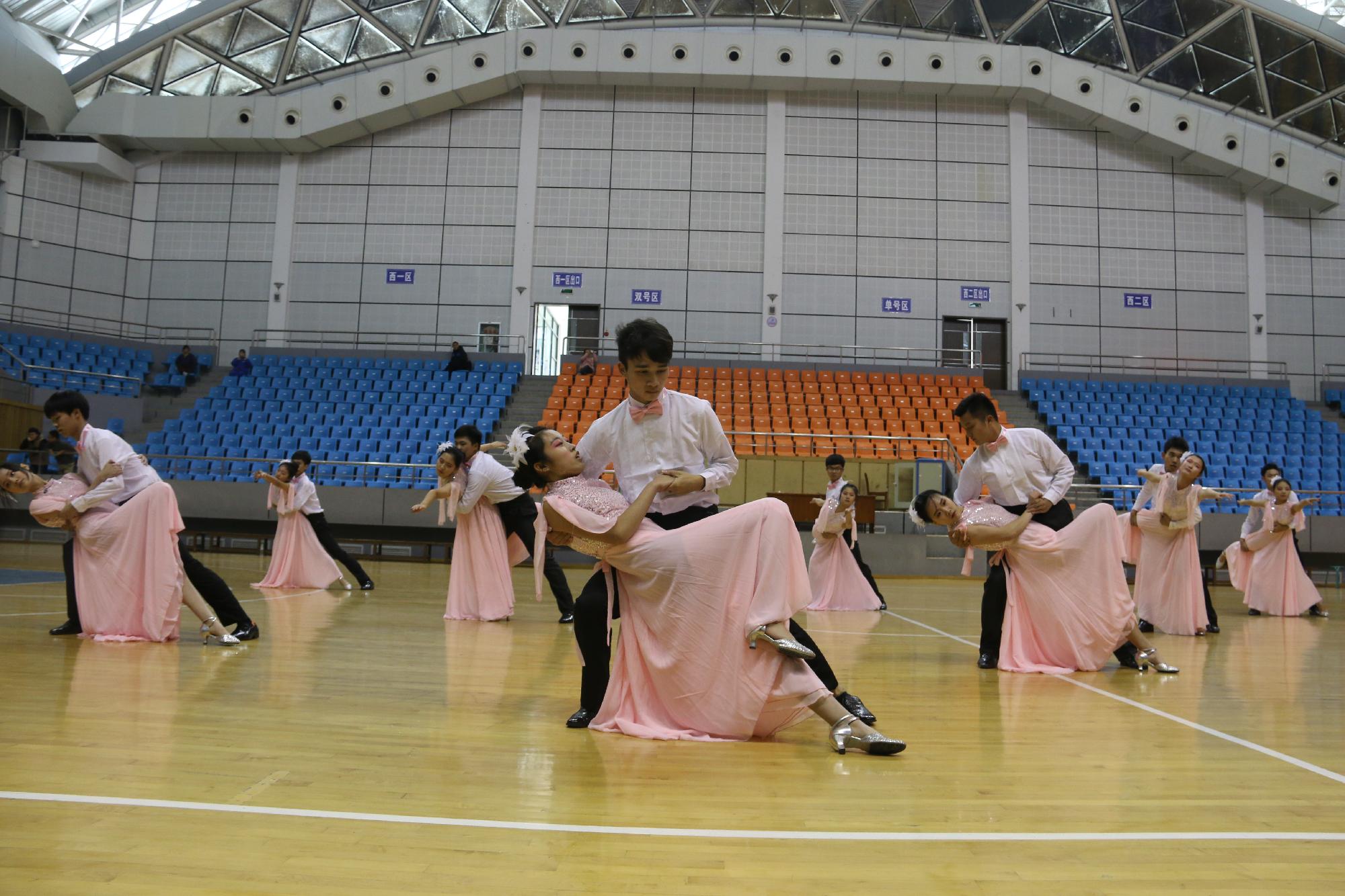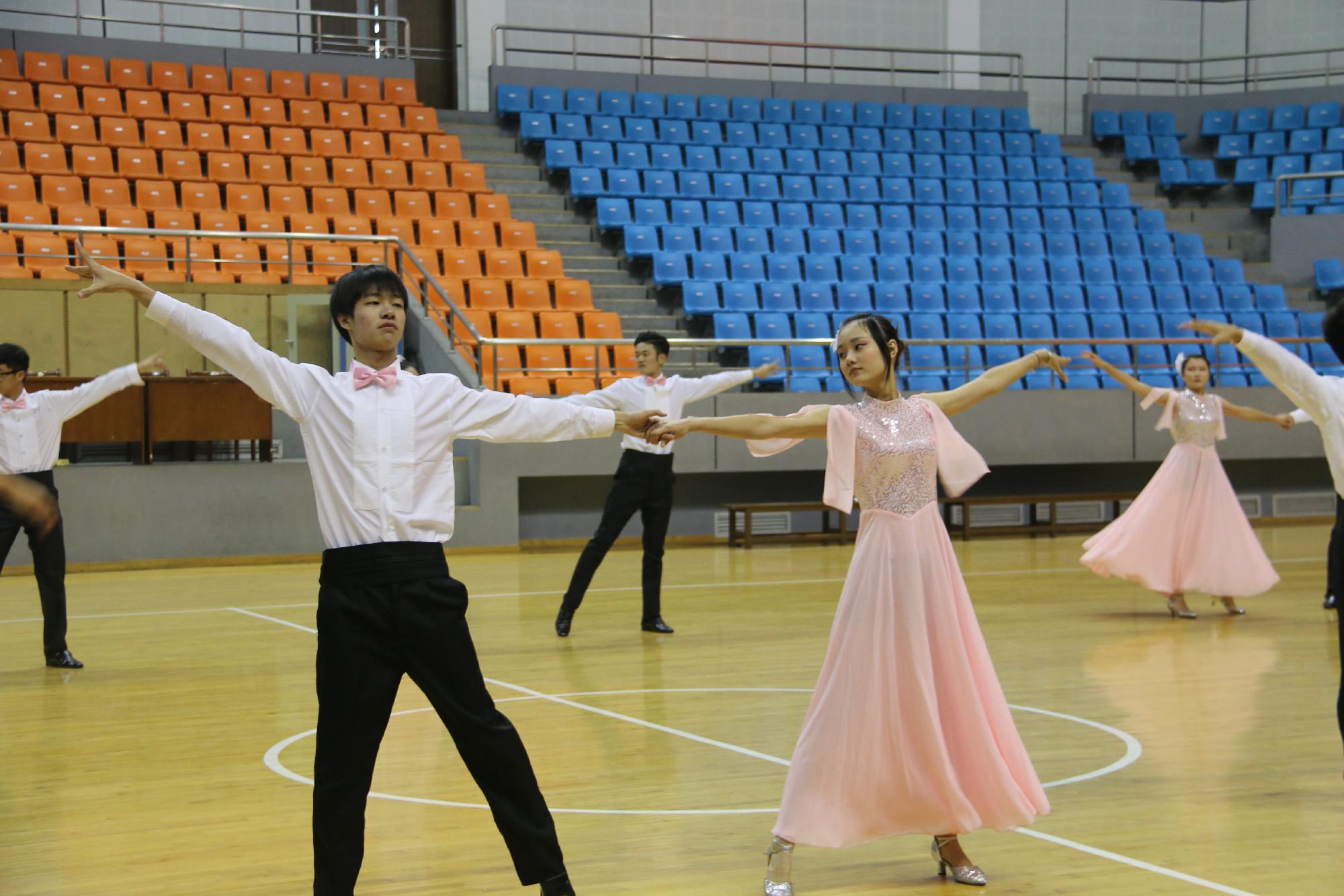 严寒的天气阻挡不了经贸参赛选手的热情,早上十点,选手们就已经到达体育馆进行最后的训练与准备。在简单的彩排后,比赛准时开始。首先开始的是集体舞——华尔兹,各院选手华丽的舞姿和优雅的步伐博得了观众们一阵阵热烈的掌声。雷速体育投注