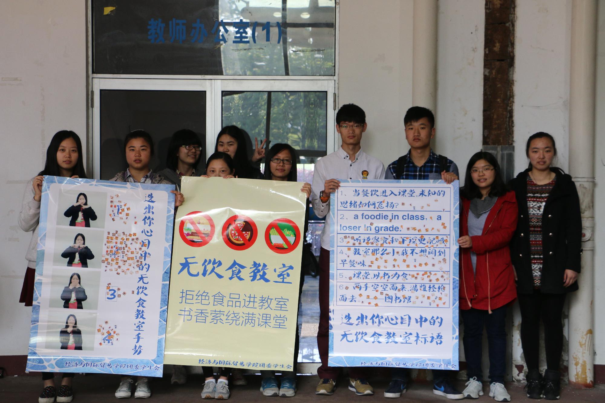 “无饮食教室”的倡议,得到许多同学的肯定和赞同,并表示一定从自身做起,做一个讲文明有修养的大学生。活动负责人表示,希望全体同学积极行动起来,相互提醒,相互监督,养成健康的学习生活习惯,共同营造一个文明整洁的教室环境。