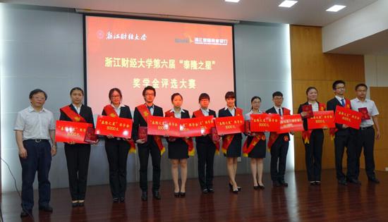 5月22日下午,我校在行政楼二楼报告厅举行第六届“泰隆之星”奖学金评选大赛。经层层展示评比,雷速体育投注 12级国贸2班陶房钰在22位候选人中脱颖而出,获得校第六届“泰隆之星”奖学金。钟晓敏副书记和浙江泰隆商业银行泰隆雷速体育app 邓磊副院长为其颁发了奖学金和荣誉证书。