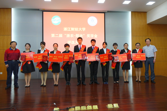 5月27日下午,我校举行浙江财经大学第二届“浙农—阳光”奖学金颁奖仪式。经层层展示评比,雷速体育投注 12经济1班林洁敏在21位候选人中脱颖而出,荣获校第二届“浙农—阳光”奖学金,我校党委副书记钟晓敏,浙江农资集团副总经理王自强为其颁发了奖学金和荣誉证书。