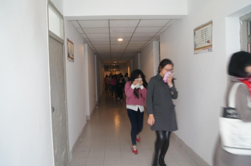 下午13:00,演练活动正式开始。首先,演练负责人向全体学生强调了消防意识要点:第一,平时一定要保持良好的消防安全习惯,不要在宿舍使用明火、违禁电器等,从根源消除火灾隐患。第二,当有火灾发生时,应第一时间拨打119火警求救电话向火警求救。第三,面对火灾一定要冷静、镇定、不慌乱,采取正确的自救、求救措施。随后,模拟演练正式开始,随着一声急促的警报声响起,学生在引导员的正确引领下,用毛巾捂住口鼻,采取弯腰、低姿的方式迅速逃离到安全区域。整个应急演练活动规范、有序、紧凑、安全、高效,老师和同学们临危不乱,组织有序,逃生时没有发生拥挤、踩踏和碰伤学生的事故,整个过程仅用了4分钟。