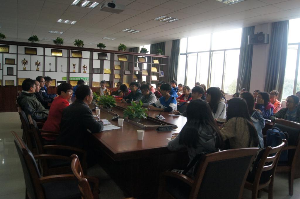 楼311会议室举行2015级国贸英华班师生交流会。院长胡亦琴、副院长柴志贤、国贸专业负责人张哲、国贸系系主任茹玉骢、15国贸英华班班主任赵卓嘉、15国贸英华班全体同学等参加了本次交流。