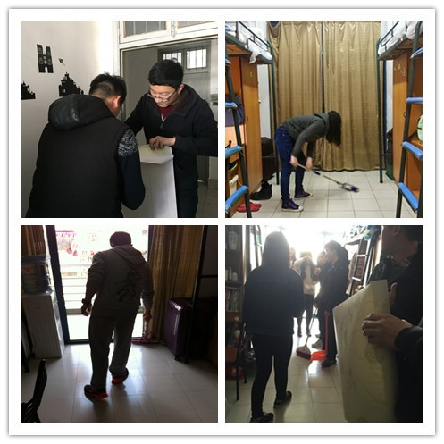 “过来帮我把这个桌子抬一下,桌脚下面有点脏”,“请递给我一块抹布”,“这儿还有一个蜘蛛网”……3月3日下午,桃李苑5幢402寝室充满了大家热火朝天打扫卫生的欢声笑语。