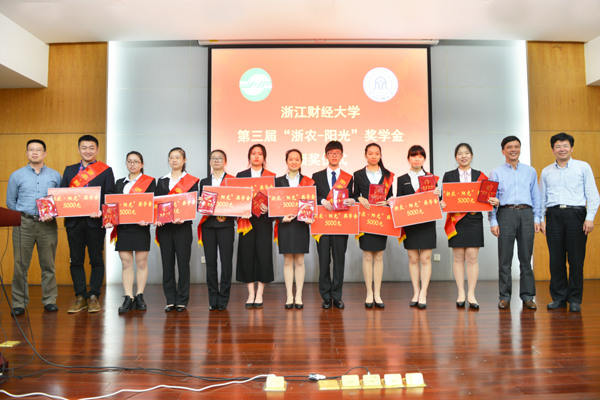 5月24日下午,我校举行浙江财经大学第三届“浙农—阳光”奖学金颁奖仪式。经层层展示评比,雷速体育投注 13国贸1班刘霞在众多候选人中脱颖而出,荣获校第三届“浙农—阳光”奖学金,我校副校长励如孟,浙农控股集团副总经理方建成为其颁发了奖学金和荣誉证书。
