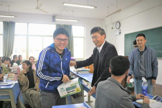 为考研学生送上了慰问品。