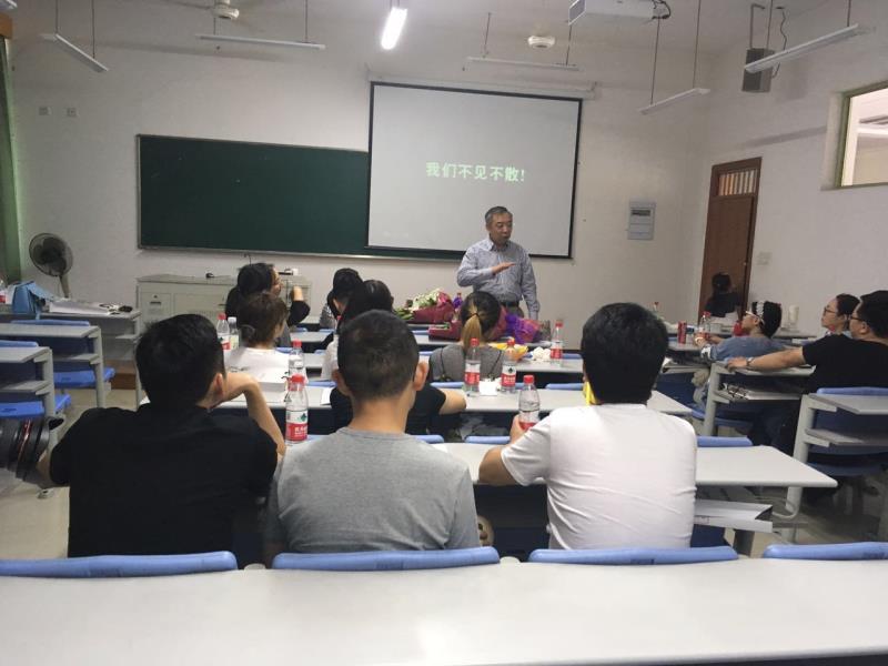 随后,校友们特别期待的崔大树老师受邀为校友重温了一次经济学课。课上,崔老师幽默风趣的语言,从经济学理论说起,再谈到校友们现在的生活与工作,课堂氛围轻松,校友反应热烈,纷纷拿出手机记录这久违的课程。课后,崔老师与校友们合影留念。
