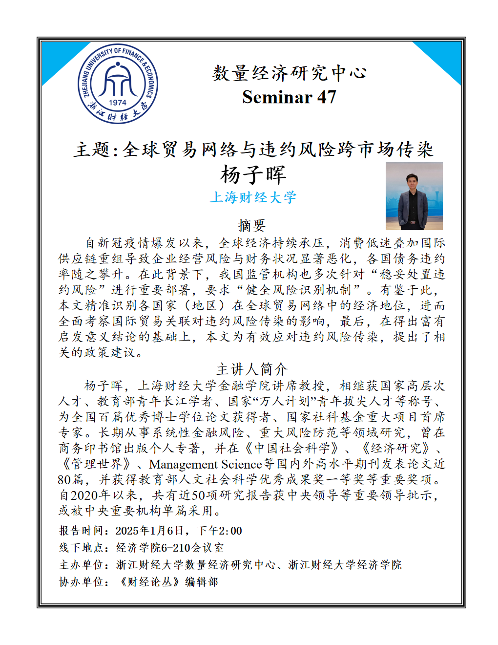 学术讲座——浙财数量经济研究中心Seminar 47
