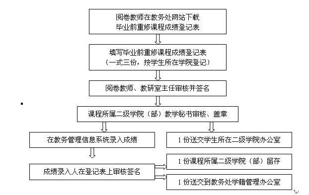 (部)教学秘书于5月15日前将毕业前重修考试成绩录入教务管理系统。