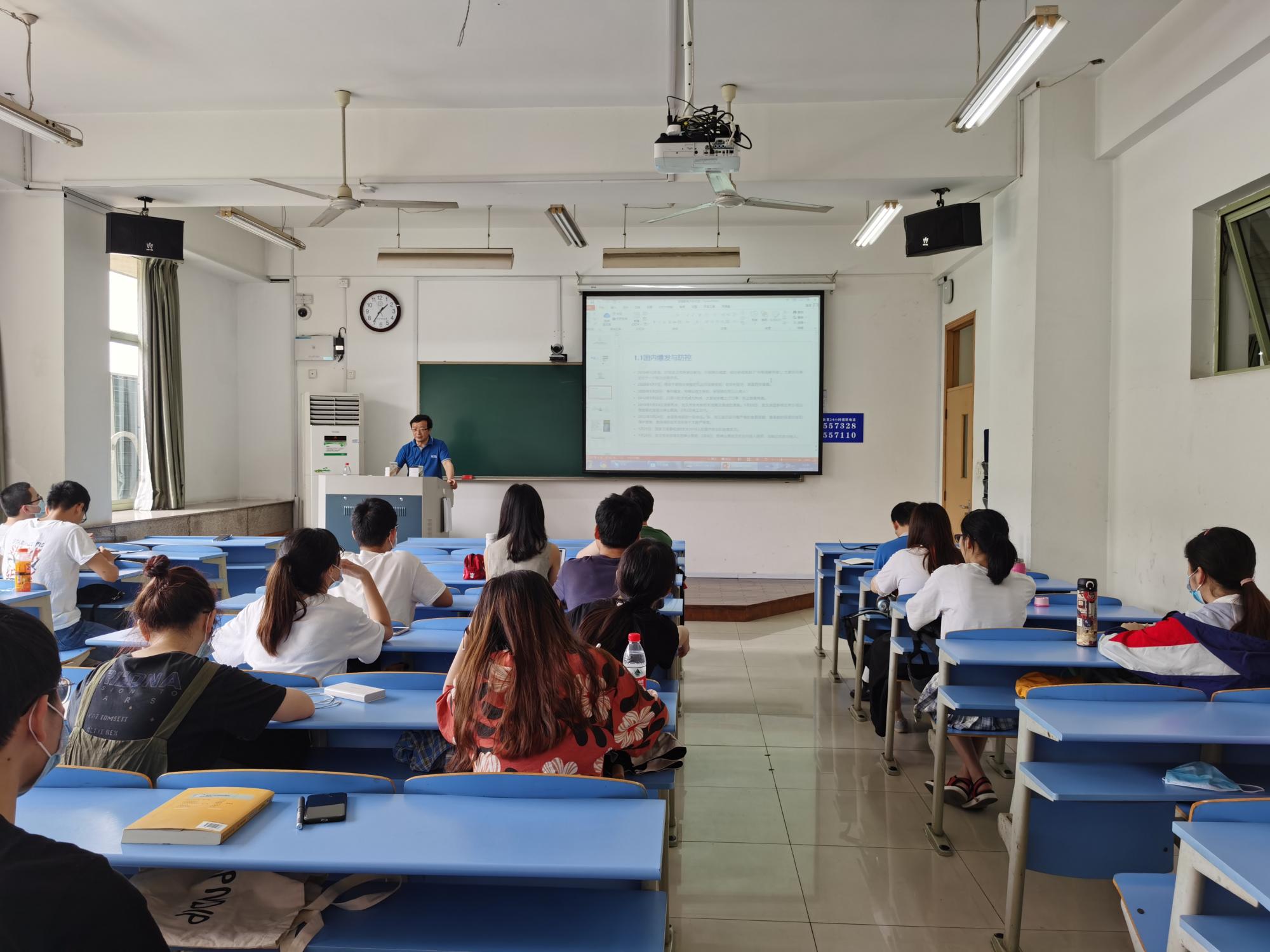 《发展经济学》的课堂授课,开展题为“疫情对我国外贸影响及应对”的“基地精英进课堂”活动。此次活动由柴志贤老师主持,2018级经贸1.2.3班的学生参加了本次活动。