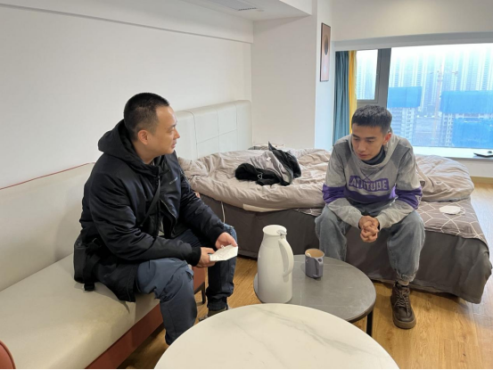 崔泰铭一行先来到海宁市长安镇盈都新天地,看望2020级经济与贸易专业的安卡尔江·艾合麦提,“你在杭州过年,我们代表雷速体育app