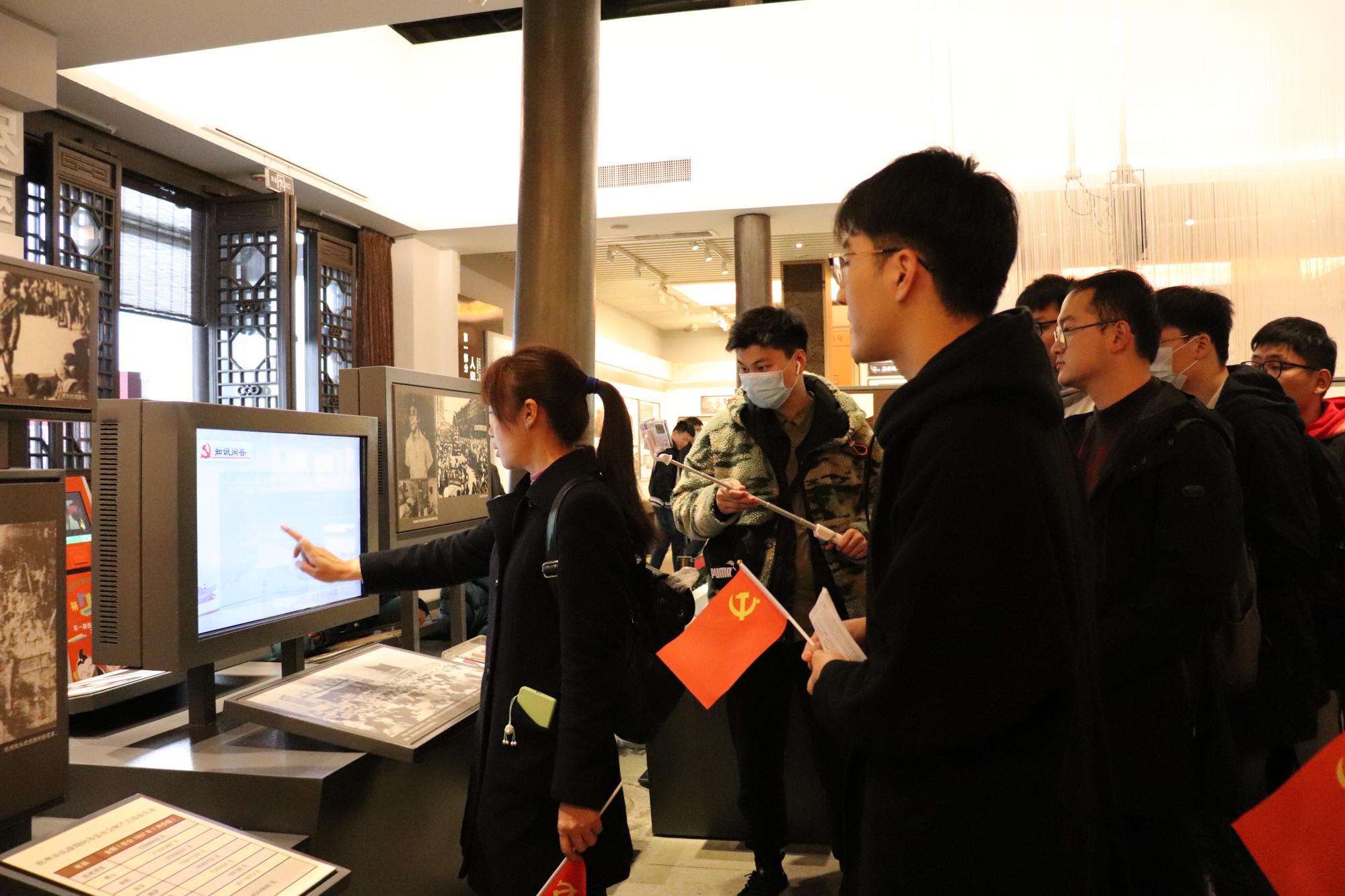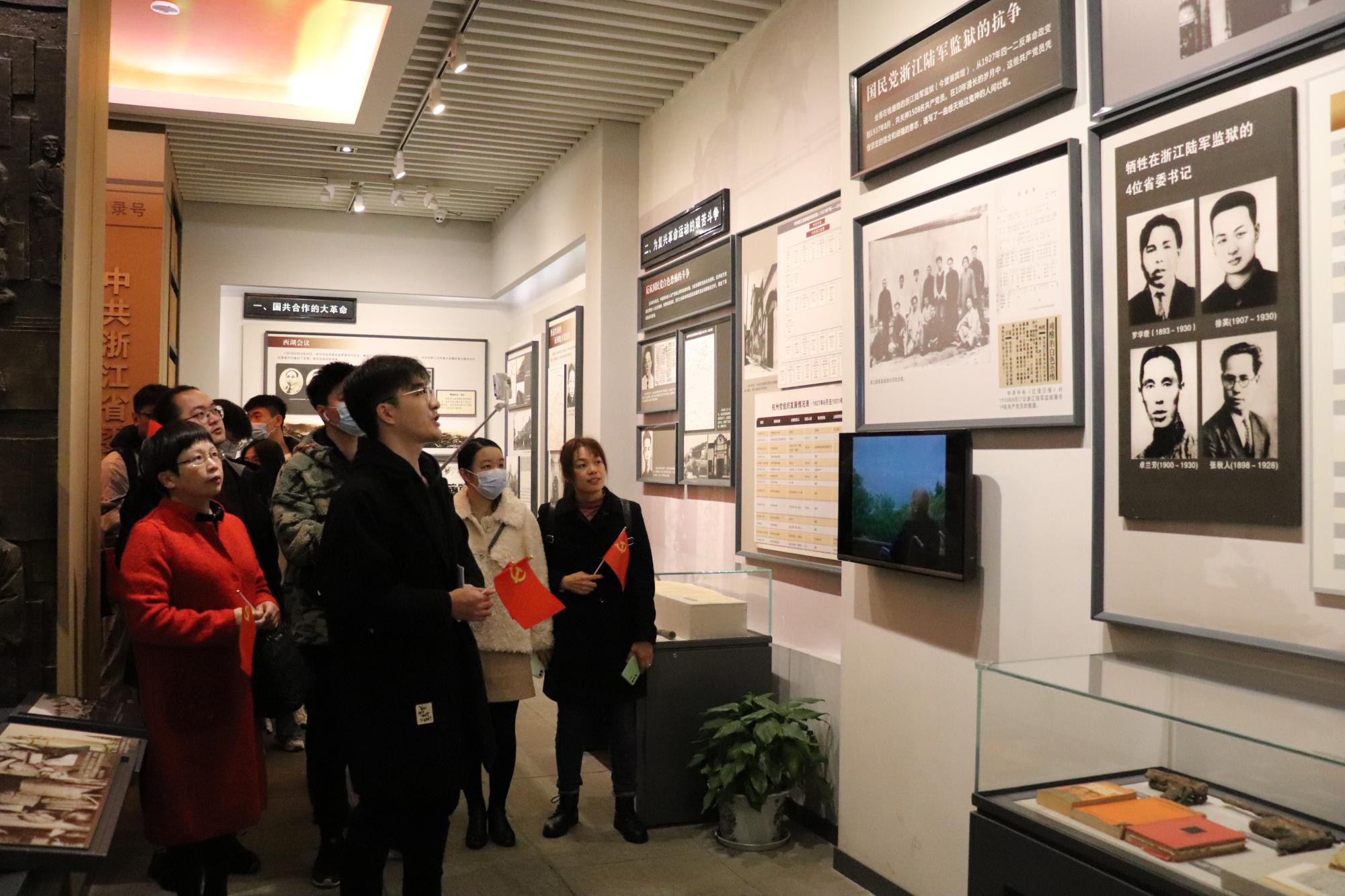 师生党员代表20余人来到中国共产党杭州历史馆开展第一次宣讲学习活动,进行“学党史”现场教学,通过线上直播的方式将宣讲内容传播给在校的师生,在线学习人数达到4000余人。