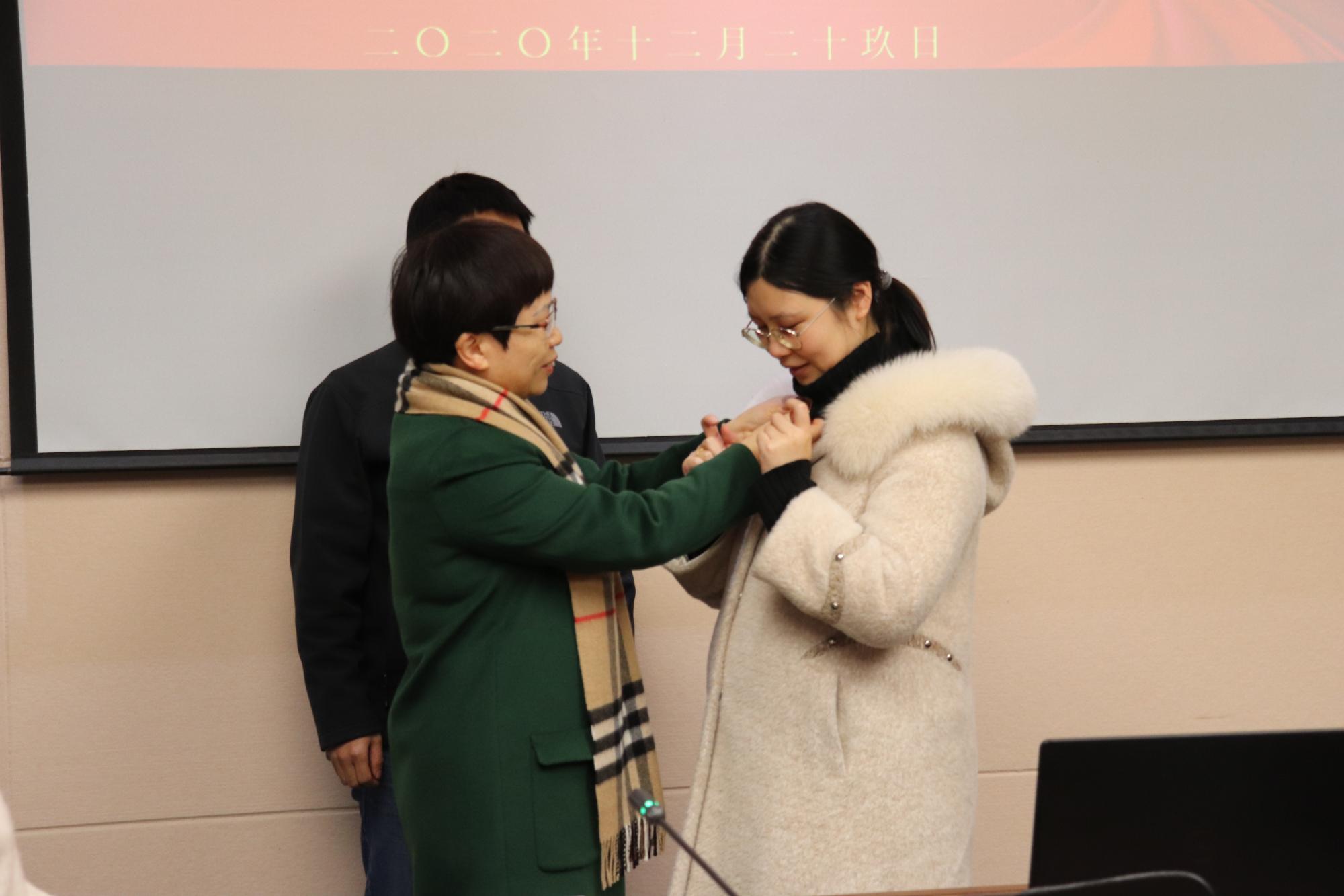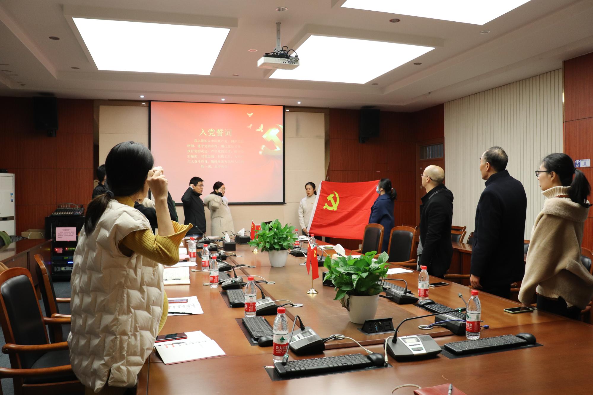 党委书记胡亦琴为今年两位新党员佩戴党徽,这种薪火相传的佩戴党徽仪式,是一种鞭策,也是一种激励;是一种精神的传承,也是一种奋斗的延续。在支部书记赵卓嘉的带领下,全体党员一起重温了入党誓词,铿锵恢宏的誓词,强烈震撼着在场的每一位党员,一字一句,神圣而豪迈,体现了党员同志们对中国共产党的无限忠诚。