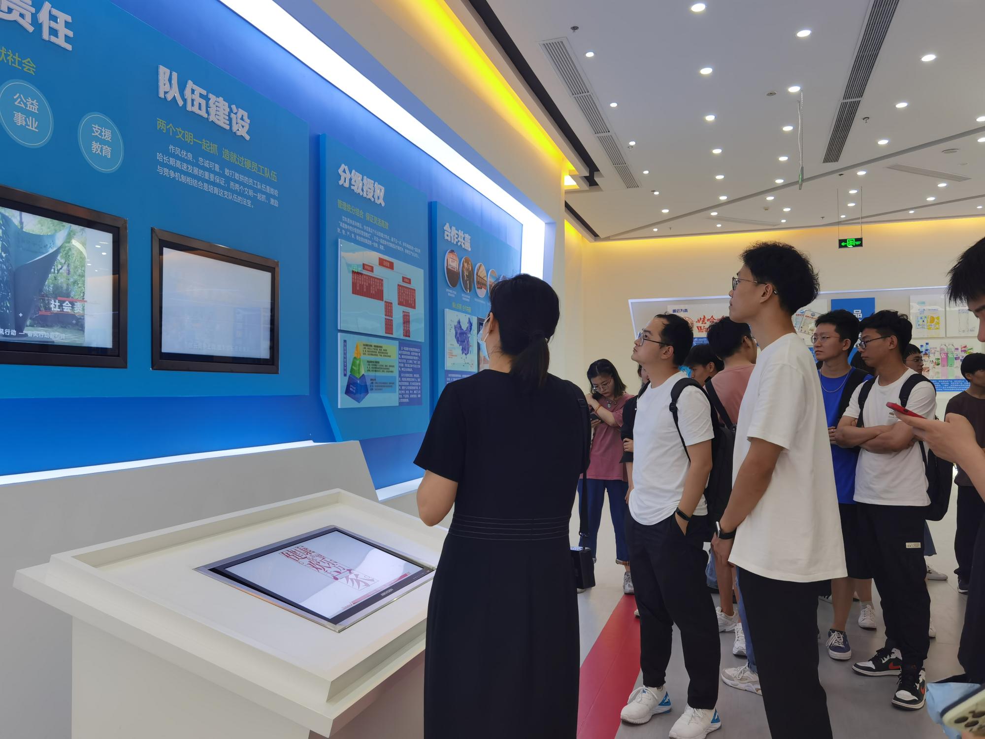艰苦创业、从无到有,大家跟随讲解员走进了娃哈哈的创业历程。30多年来,娃哈哈在改革开放中茁壮成长起来,不断开拓,锐意进取,从一家小学校办企业成长为中国最大的饮料企业。讲解员向大家介绍了娃哈哈的产品,分享了“大党建”工作、小步快跑战略、管理和技术创新、品牌建设、营销战略、雷速体育app-雷速体育投注、智能制造、大健康产业发展等方面的经验。
