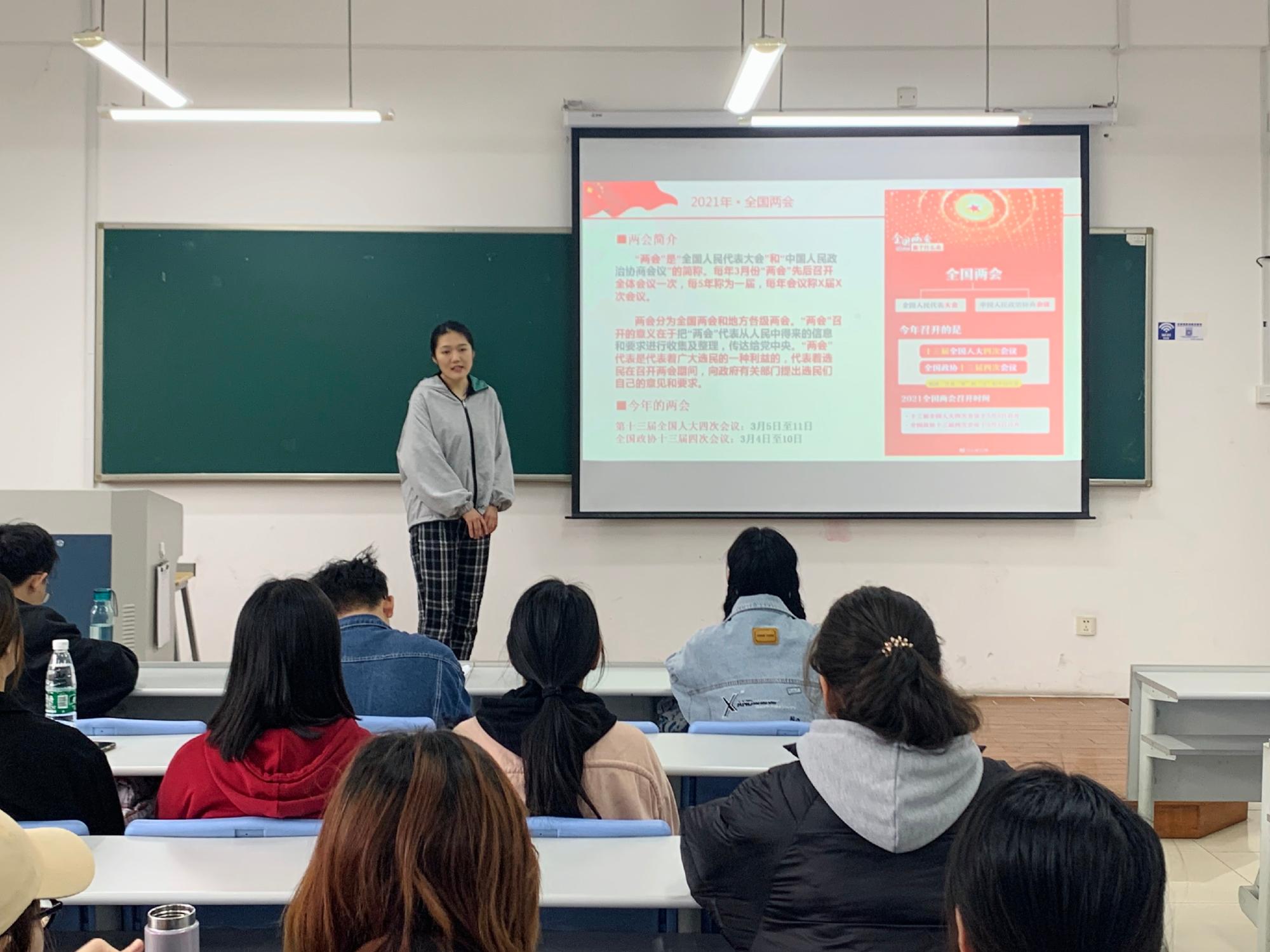 楼109教室开展,本科生第二党支部成员组织参加了此次学习会,对“两会”热点进行深入解读。