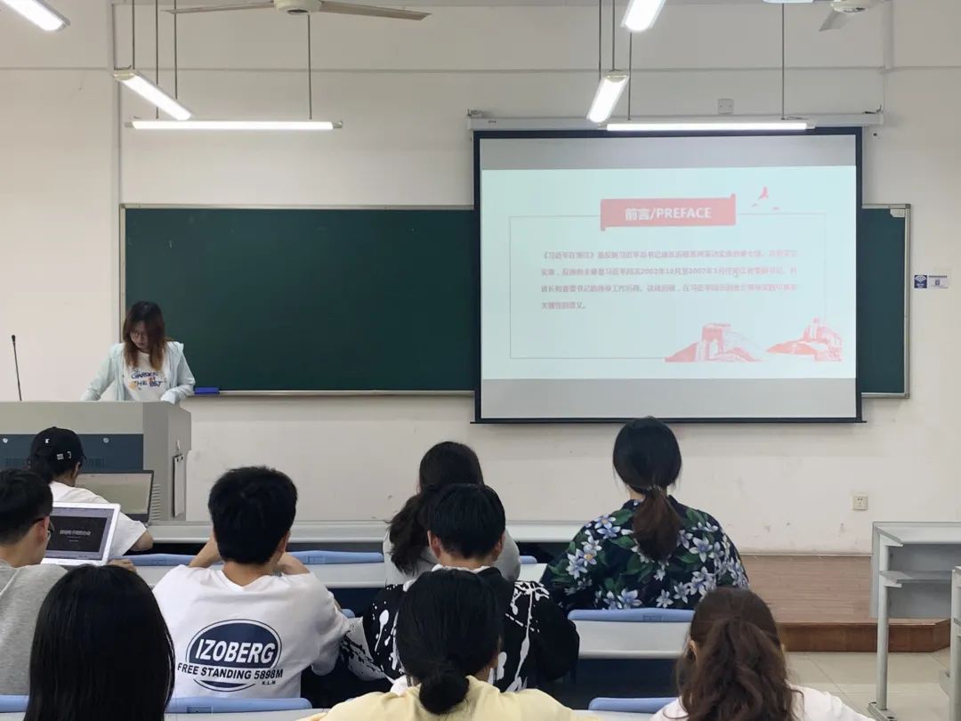 随后,支部成员结合实践,就感悟最深的采访实录内容进行了讨论。何欣雨围绕湖州安吉县重点关闭污染企业,大力发展生态经济、旅游经济的举措,分享了习近平总书记关于“两山论”的重要论述。王静怡讲述了习近平总书记在浙江工作期间多次前往文化遗址进行考察的事迹。在习近平总书记的关注与领导下,浙江加快从文化大省向文化强省迈进。