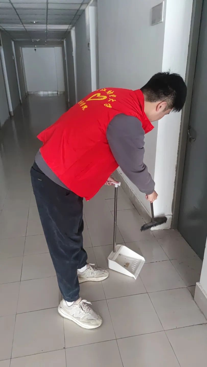 活动中,志愿者们手持扫帚、畚箕、拖把等工具,相互配合、团结协作,对寝室园区的走廊、自习室等公共区域进行逐一清洁。在志愿者的共同努力下,寝室园区的卫生环境焕然一新。同时,志愿者进行了“垃圾分类”知识的宣传,倡导同学们形成绿色、低碳、环保的生活方式。
