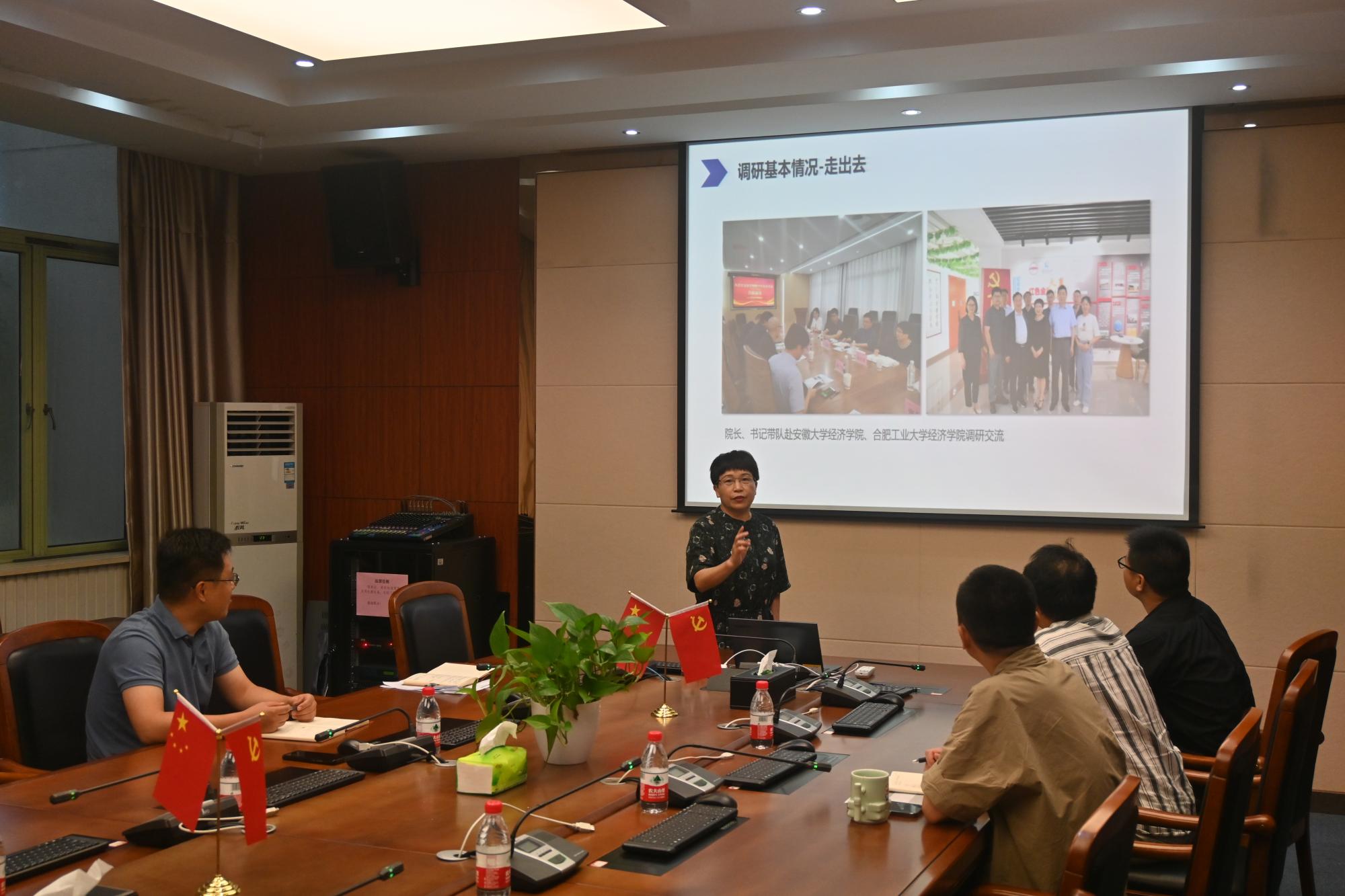 班子成员认真践行“深、实、细、准、效”调研五字诀,坚持问题导向、目标导向和结果导向相统一,精准选题、深入调研,形成了两项调研成果。胡亦琴围绕“‘党建+’视角下高校教工党支部党建与业务共融同促路径探究”调研主题,王正新围绕“理论经济学一级学科博士点培育的难点、突破口与路径”调研主题分别进行了调研成果交流发言,总结了调研基本情况,深入剖析了雷速体育app